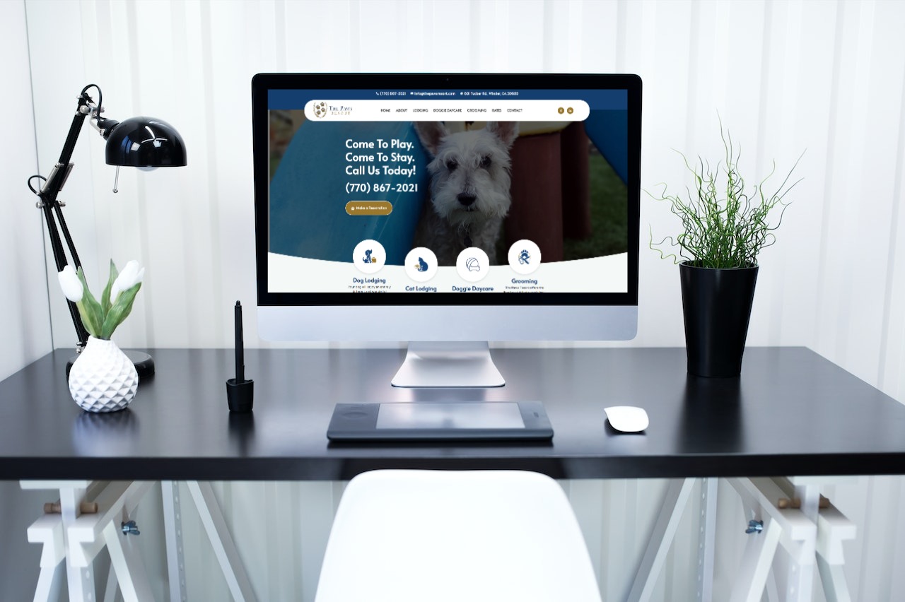 Most pet owners place a high value on their pets’ well-being. This includes making sure their pet is safe when they have to go out of town for business or vacation. Going online to determine which boarding facility/pet resort is good enough for their fur baby is a part of making sure their pet stays where they can get the best care possible. This is why a strong, impactful website is critical to the success of a pet resort or pet boarding facility. In addition, the website plays a vital role in whether or not pet owners choose you for their beloved animal. You could actually lose a potential client if the content on your website fails to impress them. The Paws Resort is an award-winning and recommended pet care facility because of the special care they provide to all of their furry guests. They not only offer Dog, cat, bird, and small animal lodging, but they also offer doggy daycare, dog grooming, spa services, playtime, and activities for each pet. One issue with their current website is that it is not a responsive website. (will not resize down properly for mobile or tablet viewing) Another issue is, the owner has not been able to easily update their website. You may view the website design concept below and their current website design compared to the website design concept we have completed and presented to The Paws Resort.