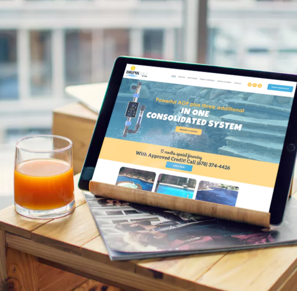 Website design concept has been completed for Drinkable Pool Water. Drinkable Pool Water Systems are the only systems available in the USA offering 4 different technologies calibrated and controlled by one central control panel in order to achieve the absolute best results.