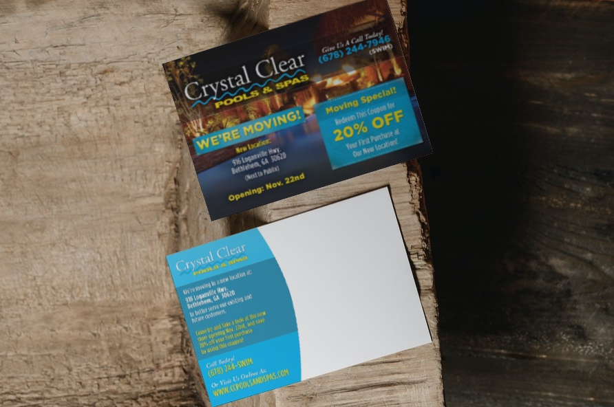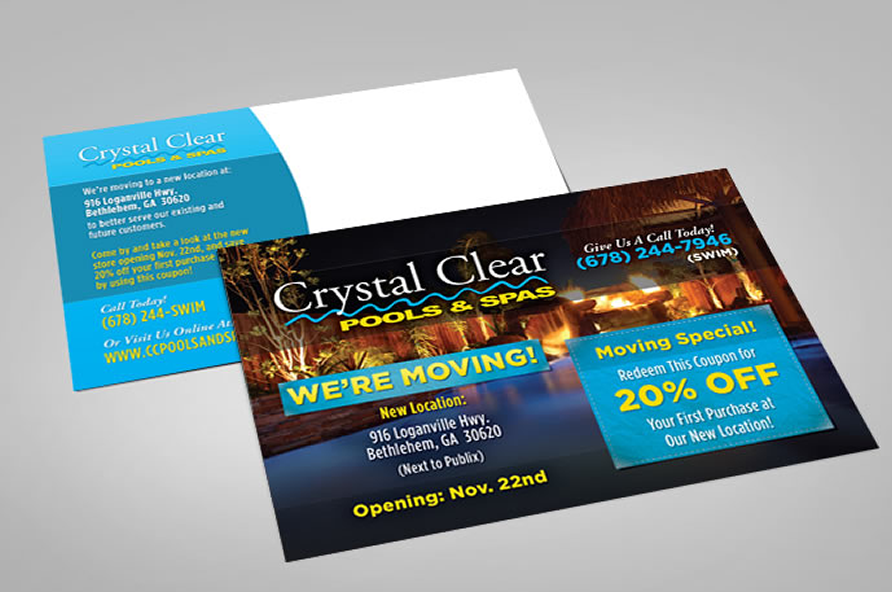 Crystal Clear Luxury Pools & Spas Postcard Design